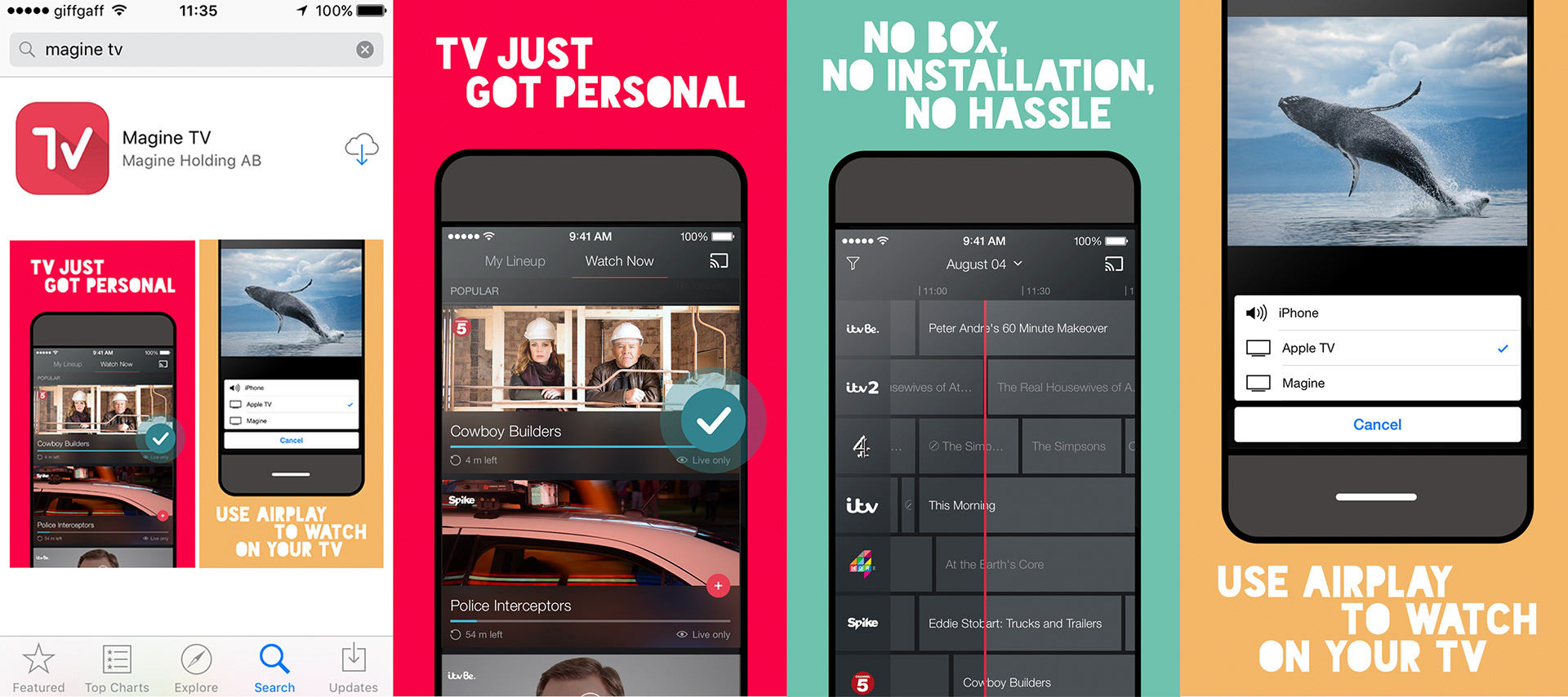 I developed a suite of assets for Magine, a live TV app which is no longer available in the UK but still operates in Germany and Sweden. The work included adcepts, web design and email work, app screens and social media assets.